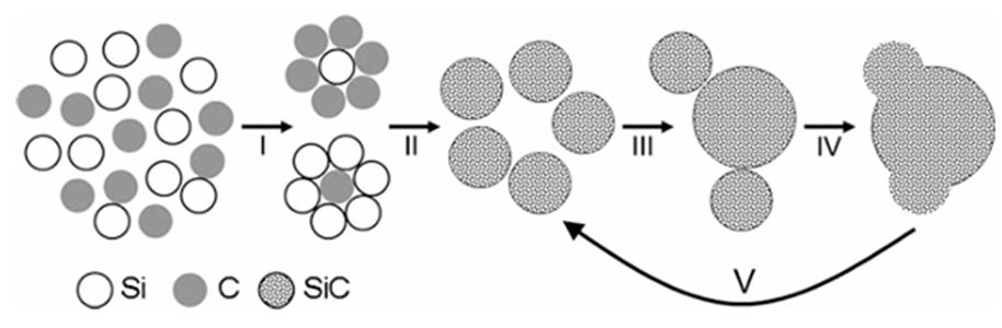 Üçüncü nəsil yarımkeçiricilərin əsas materialı kimi,silikon karbid (sic)Mükəmməl fiziki xüsusiyyətlərinə görə yeni enerji vasitələri, fotovoltaik enerji saxlama və 5g rabitə kimi yüksək texnoloji sahələrdə getdikcə daha çox vacib bir rol oynayır. Hazırda elektron dərəcəli silikon karbid tozunun sintezi əsasən özünü təbliğ edən yüksək temperaturlu sintez metodunun yaxşılaşdırılmasına (yanma sintezi metodu) etibar edir. Bu üsul, si toz və c tozunun yanma reaksiyası ilə silikon karbidinin səmərəli sintezinə, xarici istilik mənbəyi (məsələn, induksiya robi istilik kimi) ilə birləşdirilmişdir.