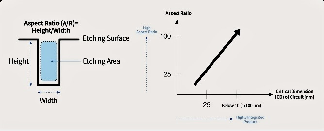 ASPET nisbəti, adının təklif etdiyi kimi, diyafram diyatousunun dərinliyinin nisbətidir. Aspekt nisbəti quruluşları, MEM-lərdə 3D cihazları üçün əsas tələbdir və aşağı səviyyədə deqradasiyadan qorunmamaq üçün qaz nisbəti və güc nəzarəti yolu ilə optimallaşdırılmalıdır.