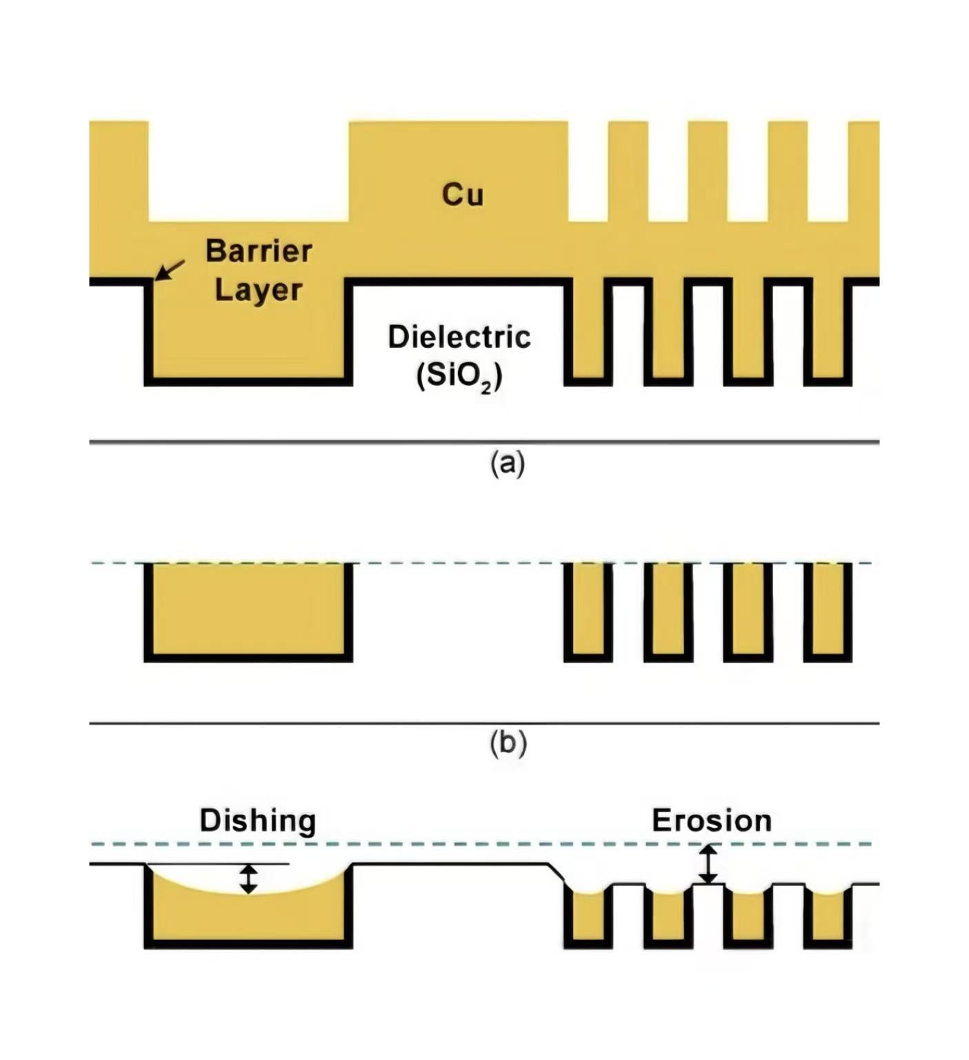 Yarımkeçirici cihazların performansı bir neçə yolda hər iki qüsurdan mənfi təsir göstərir. Onlar qarşılıqlı müqavimət artımına səbəb ola bilər, nəticədə siqnal gecikməsi və dövrə performansının azalması. Bundan əlavə, qablaşdırma və eroziya da qeyri-bərabər həmkarlarer dielektrik qalınlığına səbəb ola, cihazın elektrik performansının ardıcıllığını pozur və intermetallı dielektrik qatın parçalanma xüsusiyyətlərini dəyişir. Sonrakı proseslərdə, həmçinin litoqrafiya uyğunlaşdırma problemlərinə, zəif incə film örtükləri və hətta metal qalıqları, hətta metal qalıqlara da təsir göstərə bilər.