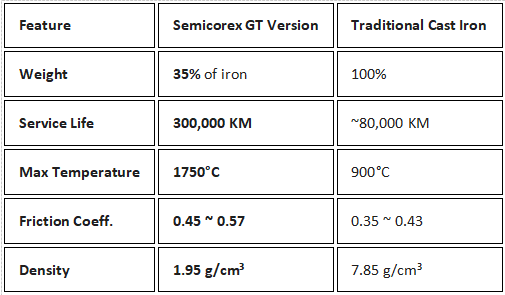 Standart dəmir əyləclər temperatur yüksəldikcə effektivliyini itirməyə başlayır (istiliyin azalması).