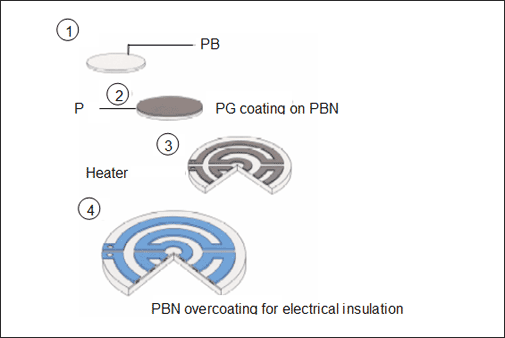 Pirolit Boron Nitrite-pirolitik qrafit (PBN-PG) Kompozit qızdırıcısı, substrat kimi yüksək izolyasiya pbn istifadə edən və aşağı təzyiqli istilik parçalanma kimyəvi buxar çöküntüsündə (CVD) istifadə edən bir qızdırıcıdır (CVD), keçirici pg Bu kompozit qızdırıcının əsas komponentləri pirolitik bor nitridi (pbn) və pirolitik qrafit (pg). Əla korroziyaya qarşı müqavimət və yüksək temperatur müqavimətinə görə, əsasən yarımkeçirici substrat istilik üçün istifadə olunur (MBE, Mocvd, Sparking örtüklü və s.); super keçirici substrat istilik; Nümunə təhlili zamanı nümunə istilik; elektron mikroskop nümunəsi istilik; metal istilik; Metal buxarlanma istilik mənbəyi və s.