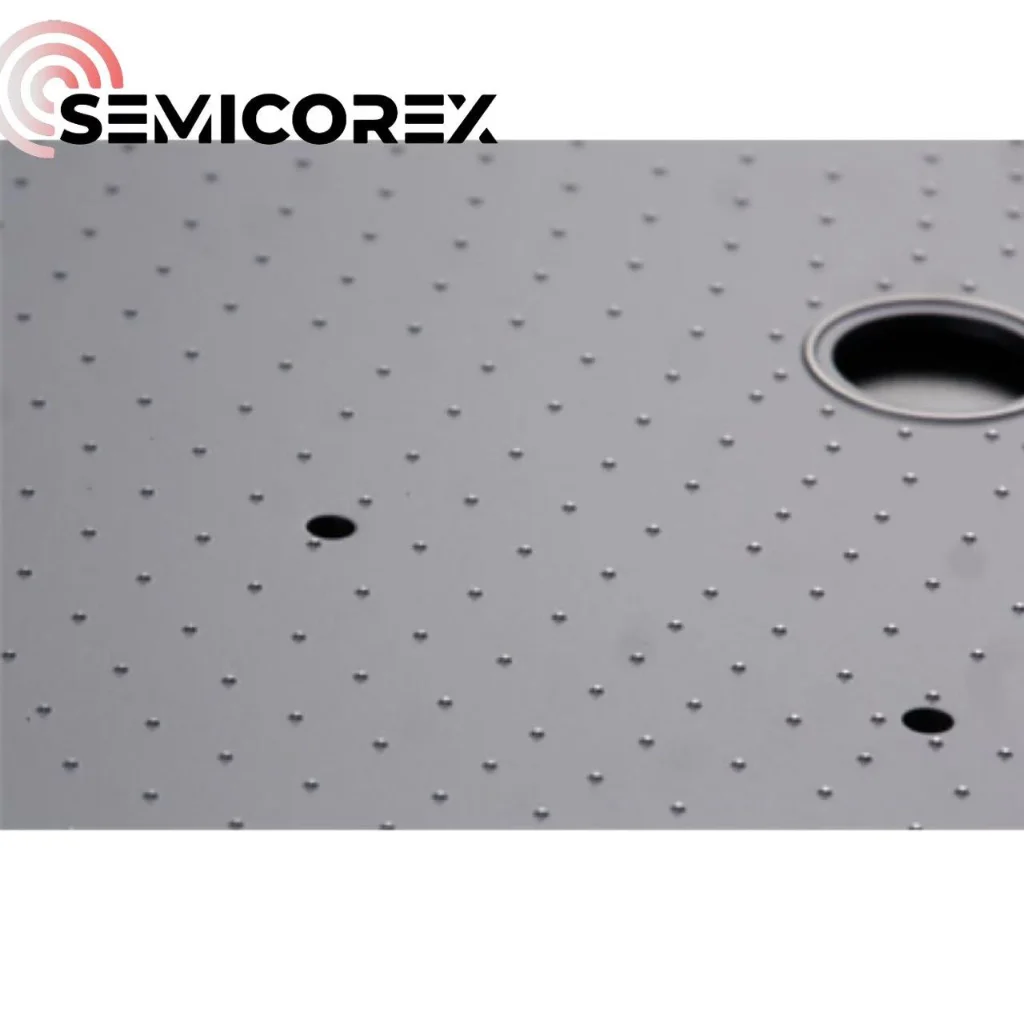 Semicorex səthisilisium karbidsancaqlar çoxlu mikron ölçülü qabarlarla düzülmüşdür. Kontakt sahəsi minimuma endirilib, çünki vaflinin arxa tərəfi ilə təmas yalnız qabarlarda baş verir ki, bu da vaflidə lazımsız cızıqların, hissəciklərin çirklənməsinin və işarələrin qarşısını alır.